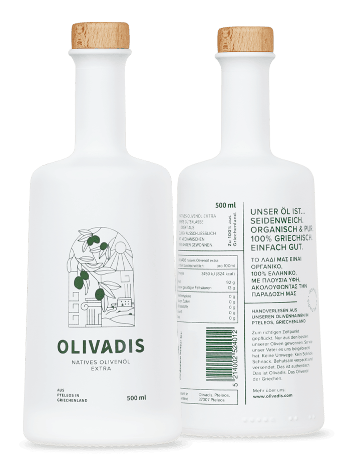 Zum richtigen Zeitpunkt gepflückt. Nur aus den besten unserer Oliven gewonnen. So wie unser Vater es uns beigebracht hat. Keine Umwege. Kein Schnick-Schnack. Behutsam verpackt und versendet. Das ist authentisch. Das ist Olivadis. Das Olivenöl der Griechen.